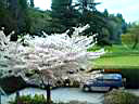 意外ですか?バンクーバーでは3月から5月にかけて様々な種類の桜が次々と咲きほこり、とてもきれいなのです。しかも、日本のように混んだところへわざわざ見に行く必要はありません。ゴルフ場はもちろん、私の家の前も桜並木ですし、すぐ近くの公園にも桜の木がたくさんあります。
